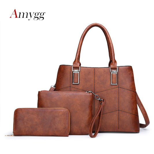 3 Sets High Quality PU Leather Women Handbags Luxury Brands Tote Bag+Ladies Shoulder Messenger crossbody bag+Clutch Feminina Sac