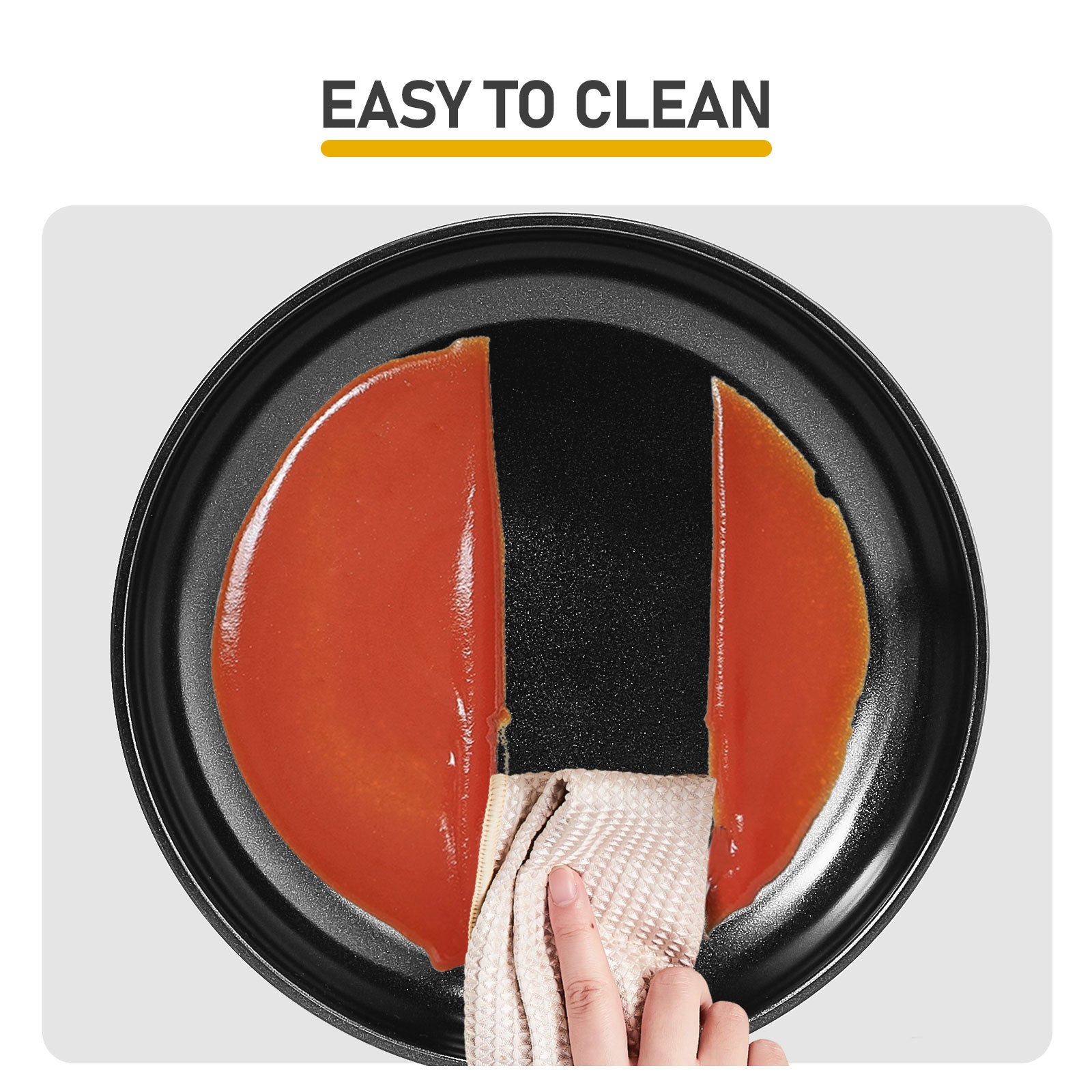 - Sleek Black Finish & Easy Cleaning: The smooth black exterior of the cookware adds a modern and elegant look to your kitchen, enhancing the overall aesthetic. The non-stick interior of the pots resists food adhesion, so you won’t have to struggle with scrubbing stuck-on food residues. Simply wipe the surface with a soft sponge or rinse with warm water after use, and the pots will be clean in no time. For long-term use, avoid using abrasive cleaners or metal utensils.