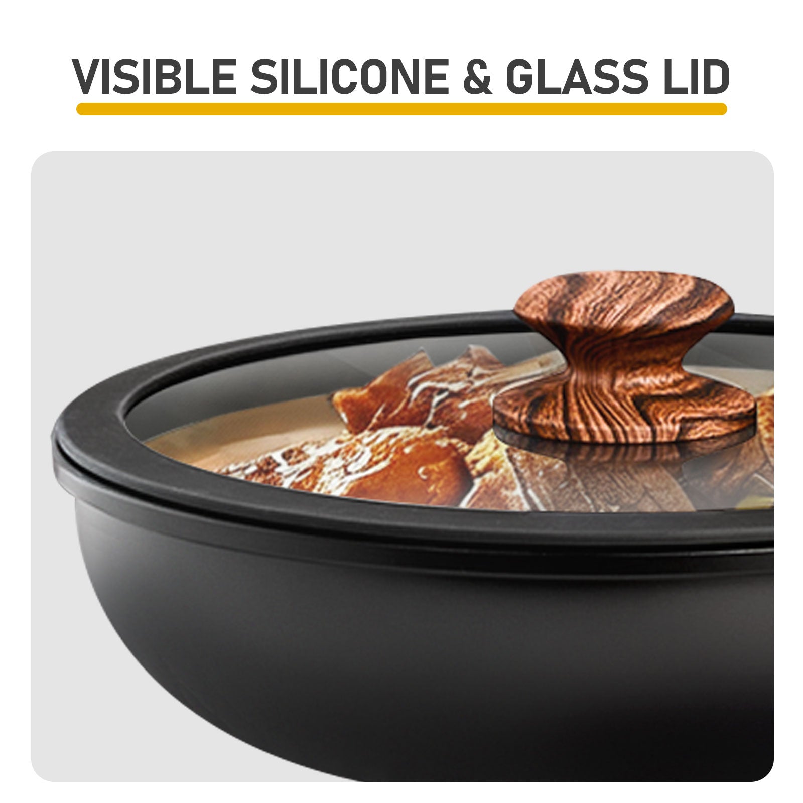 8-inch and 10 inch silicone edge glass covers Oak colored welded assembly handle x5 Silicone shovel x1