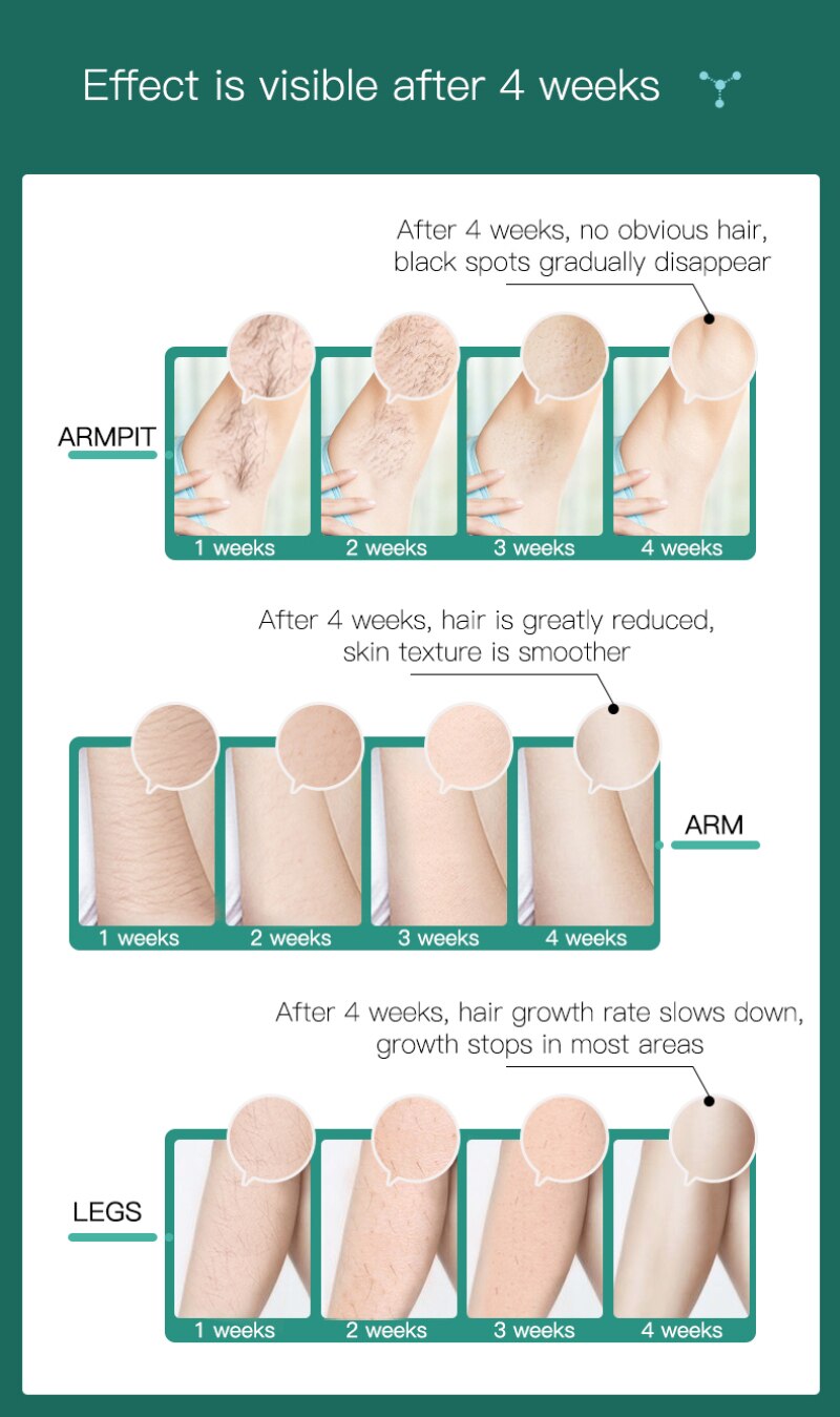 No irritation, the whole body is available: different parts, get it all in one machine, effective hair removal in 10 minutes.