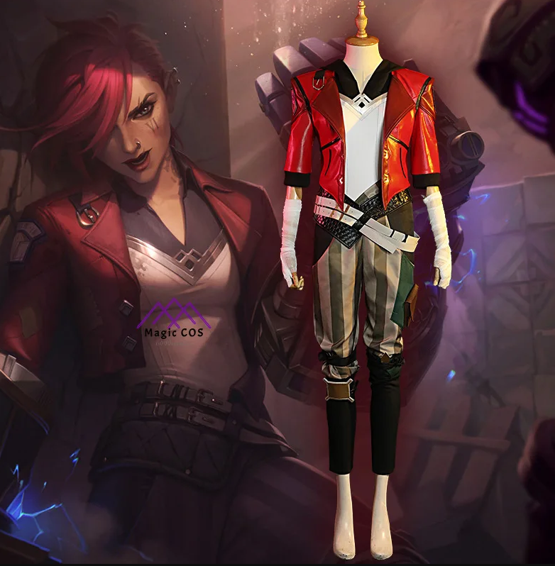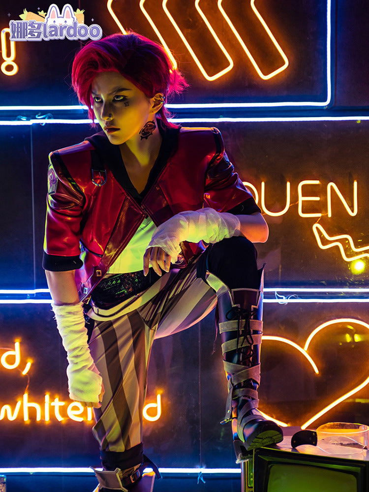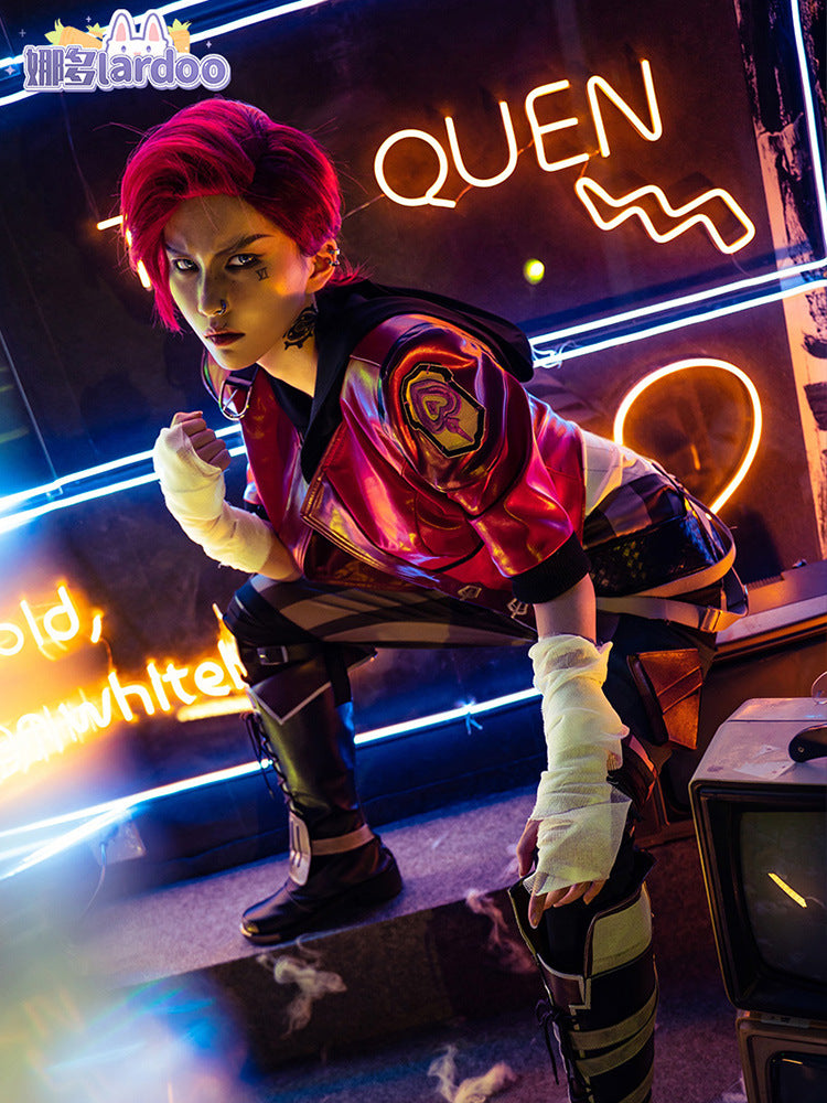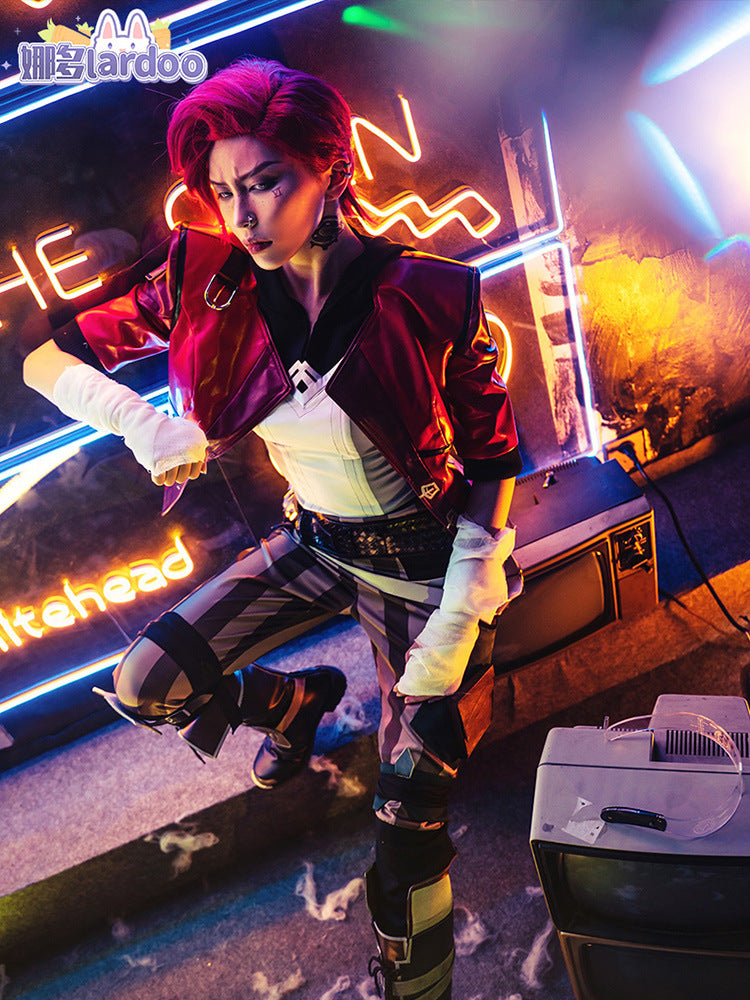 LOL Arcane Vi Cosplay Costume Anime Arcane LOL Vi Cosplay Women Halloween Costume Leather Outfit Full Set
