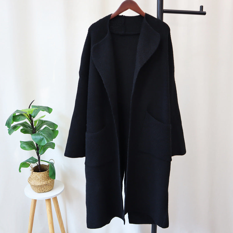 Long knee length lazy style sweater jacket, thick and loose, showing off slimming temperament, knitted cardigan for women