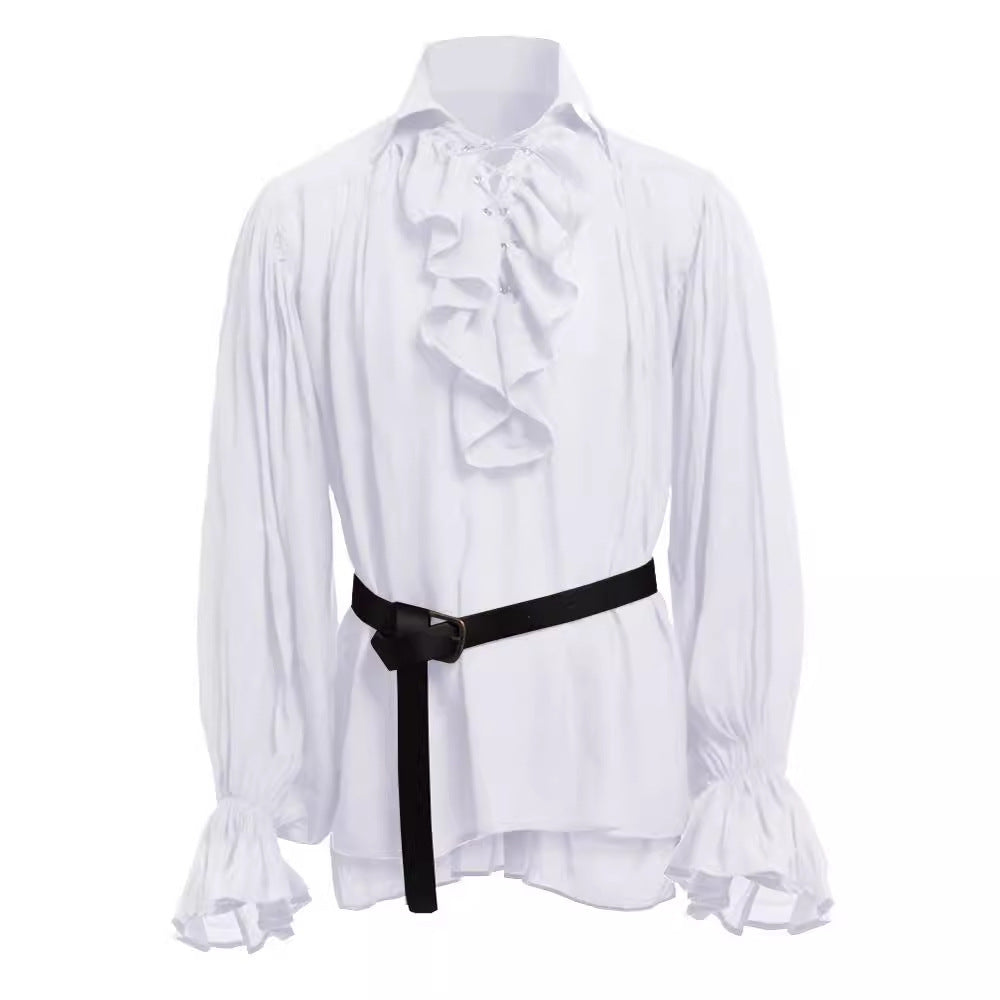 Medieval men's retro performance costume with lace up puffy sleeves top