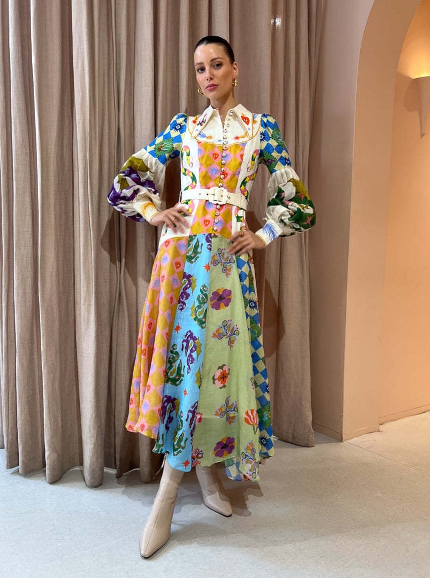 Personalized Graffiti Lantern Sleeves Long Irregular Dress for Women