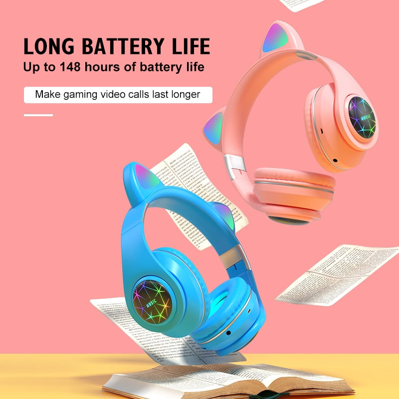 RGB Cat Ear Headphones Bluetooth 5.0 Noise Cancelling Adults Kids girl Headset Support TF Card FM Radio With Mic Gift bracelet