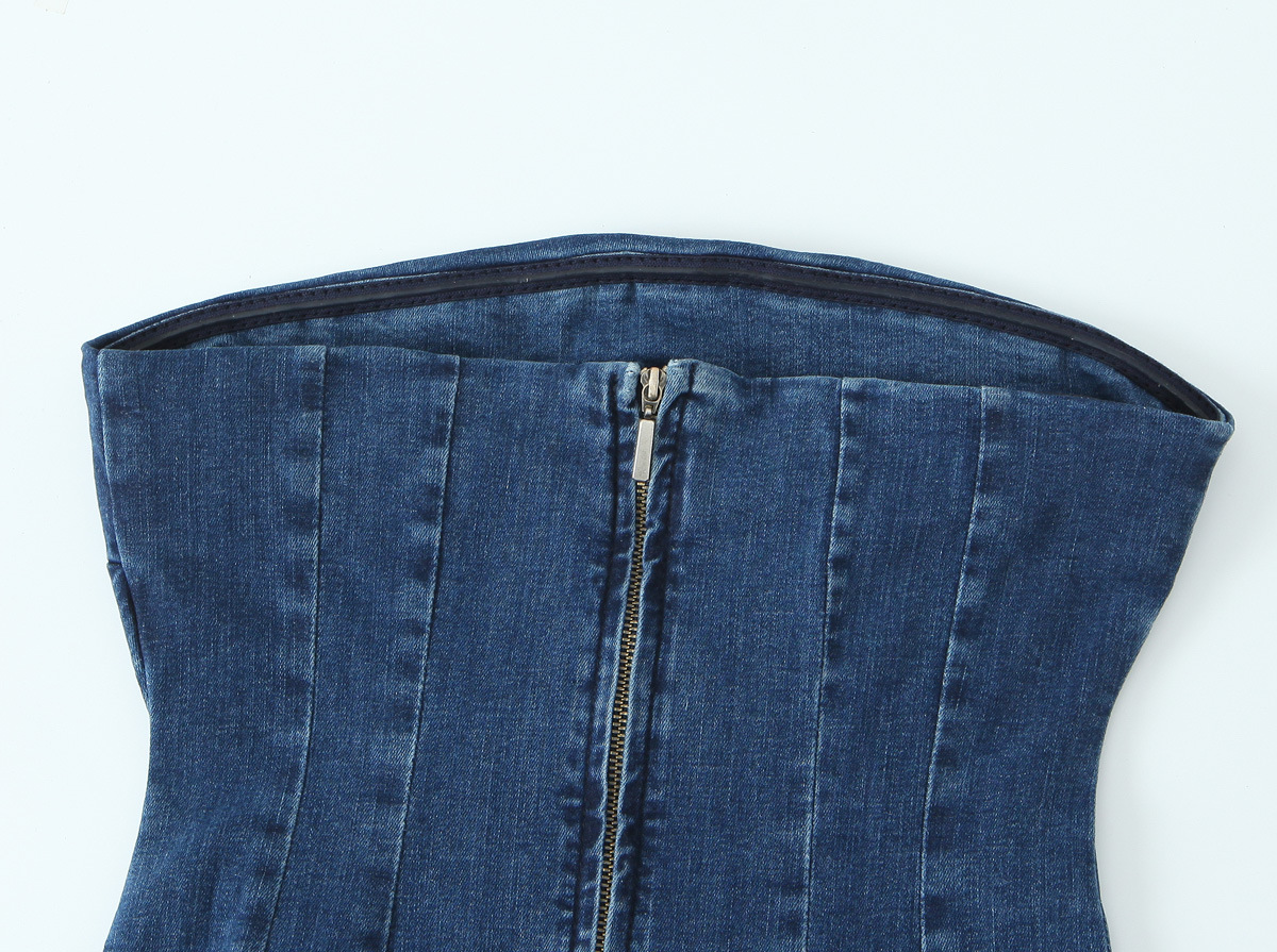 Summer Back Slit Dress Sexy Slim Backless Strapless Dress Female Long Denim Dress