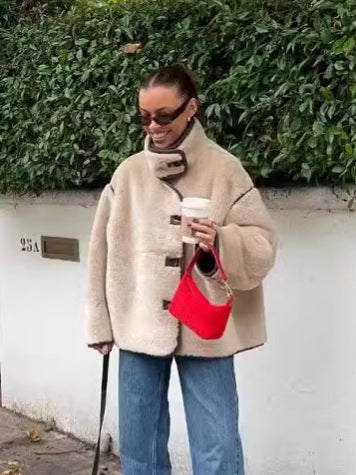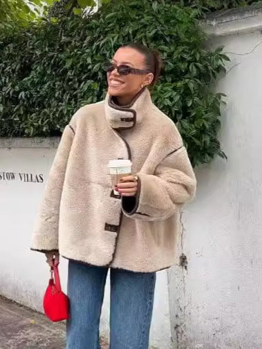 Women's French fashion versatile inlaid fleece loose casual short jacket