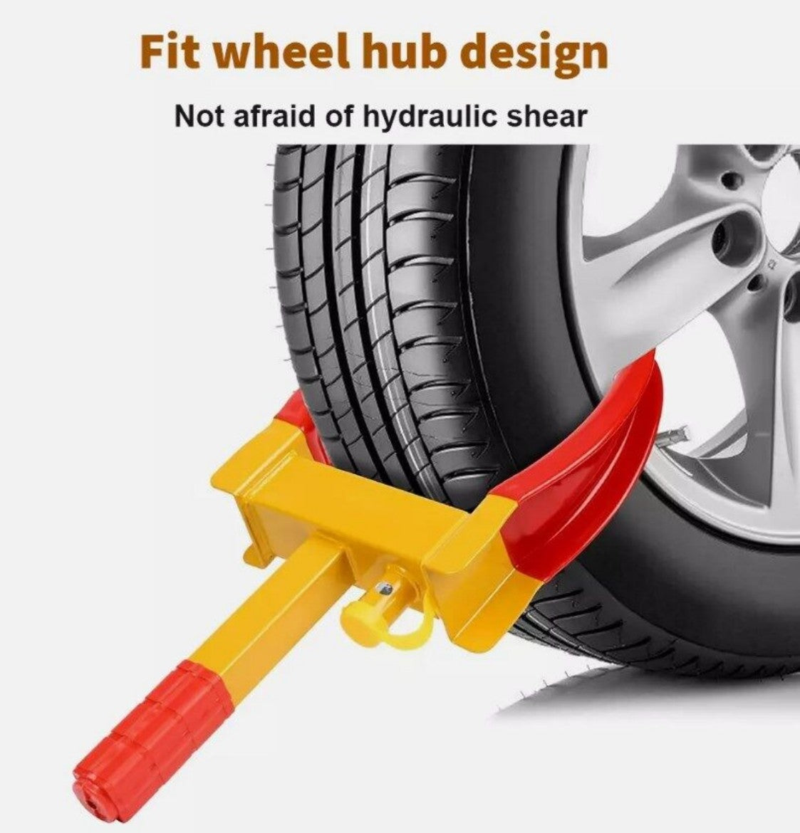 Reduce the likelihood of vehicle theft with this bright red and yellow wheel clamp. Hardly anyone will even consider breaking into your car due to the obvious visual deterrent of the wheel clamp.